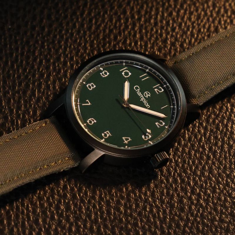 Uma peça que traduz a essência da exploração moderna. Com uma caixa de 42 mm em metal preto, este relógio projeta robustez sem perder a sofisticação. O grande destaque é a harmonia cromática entre o mostrador e a bracelete em couro, ambos num tom verde intenso, evocando uma estética militar refinada e contemporânea. É o acessório definitivo para o homem que procura funcionalidade e um design autêntico, capaz de acompanhar tanto o ritmo da cidade quanto as escapadelas de fim de semana.