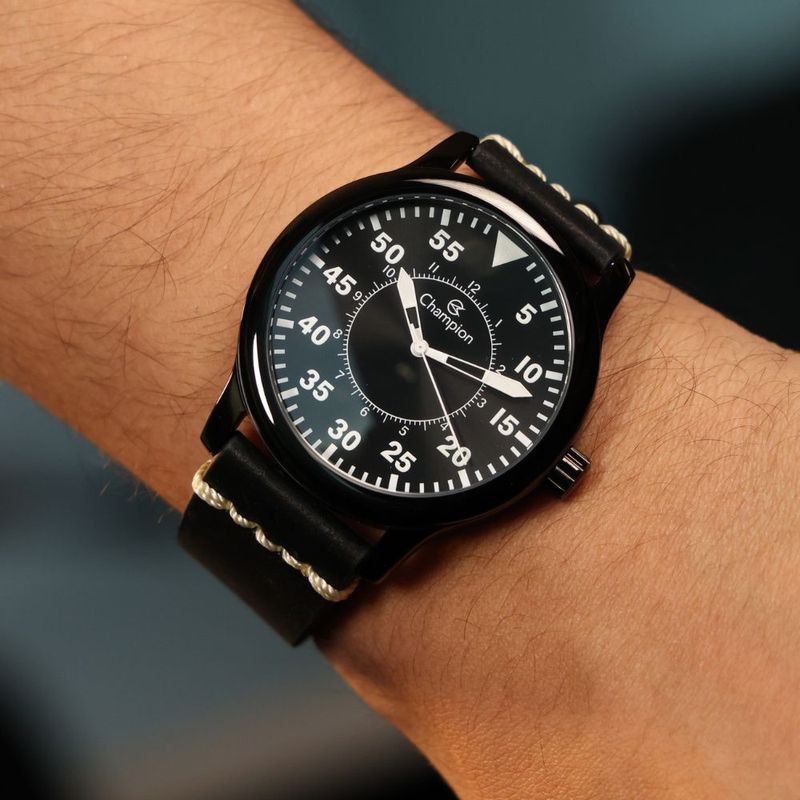 A elegância masculina na sua forma mais pura e assertiva. Com uma caixa de 43 mm e acabamento totalmente preto, este relógio projeta uma imagem de autoridade e sofisticação discreta. O mostrador escuro, limpo e moderno, alinha-se perfeitamente com a bracelete em couro preto, criando uma continuidade visual que transmite seriedade e bom gosto. O fecho de fivela garante praticidade e um ajuste clássico. É a escolha essencial para o homem que valoriza o estilo minimalista e procura um acessório versátil, capaz de elevar tanto um fato formal quanto um visual casual refinado.